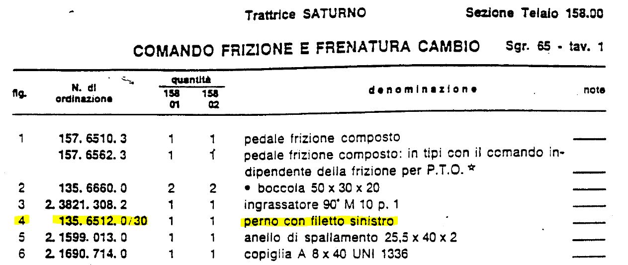 Die Teilenummer des Kupplungspedals vom Corsaro 70 Synchro ist identisch mit der es Saturno 80 Ausführung mit unabhängiger Zapfwellenkupplung.