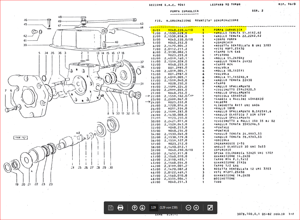 ich habe dir mal einen Auszug aus der Ersatzteilliste vom Leopard 90 Turbo angehängt. Diese Pumpen sind in mehreren Typen gleich.