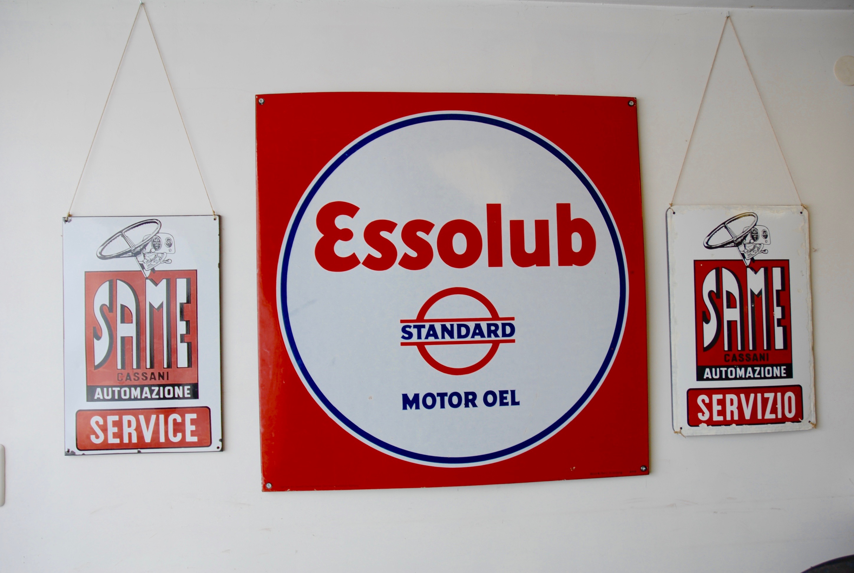 Das in der Mitte hängende ESSOLUBE Schild der Firma STANDARD OIL Company