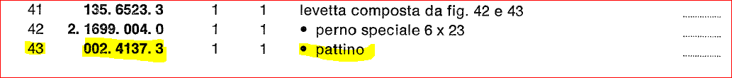 Hier ein Auszug aus der Minitauro Ersatzteilliste: Die Pos. 41 beinhaltet Pos. 43 Gleitstück und Pos. 42 Befestigungsstift