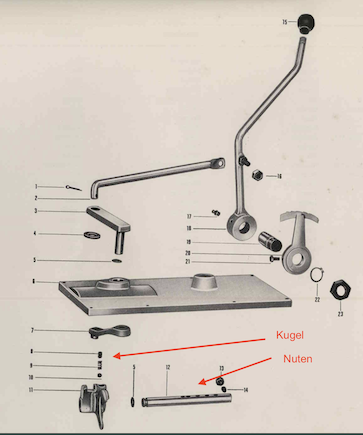 Ein Blick zu Hause in die Ersatzteilliste ergab dann die Möglichkeit, dass vermutlich die Feder des Schaltgestänges gebrochen war und er sich deshalb so unpräzise schalten ließ.