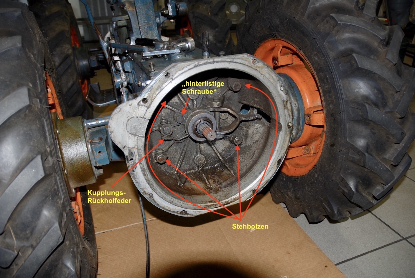 Carraro Ersatzteile und die gesäuberte Kupplungsglocke mit neuer Feder und neuem Ausrücklager