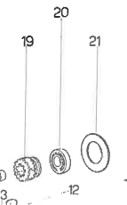 In der Stückliste ist das Zahnrad Teil 19. Teil 20 ist ein Kugellager mit 47mm Durchmesser. Daher habe ich vermutet, wenn alles halbwegs maßstäblich gezeichnet ist, dass das Zahnrad Modul 3 ist mit 13 Zähnen, was einen Kopfkreisdurchmesser von 45mm ergibt.