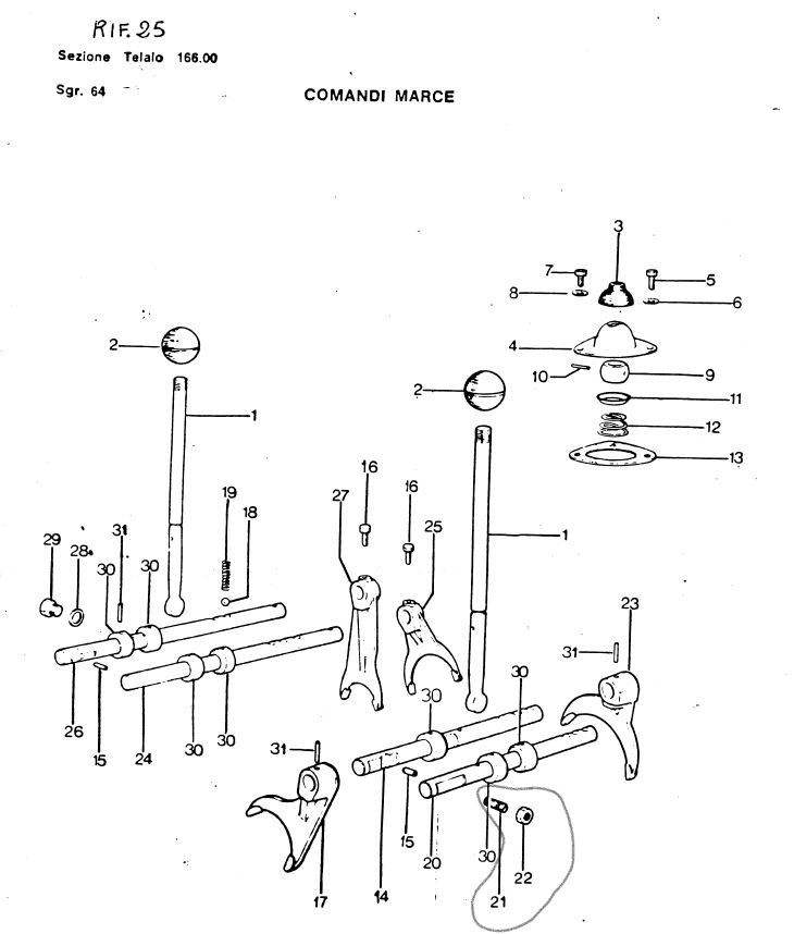 Bildnr. 20 ist die Schaltstange 1. und 2. Gang und Bildnr. 23 die Schaltgabel 1. und 2. Gang bis Fgnr. 9389.