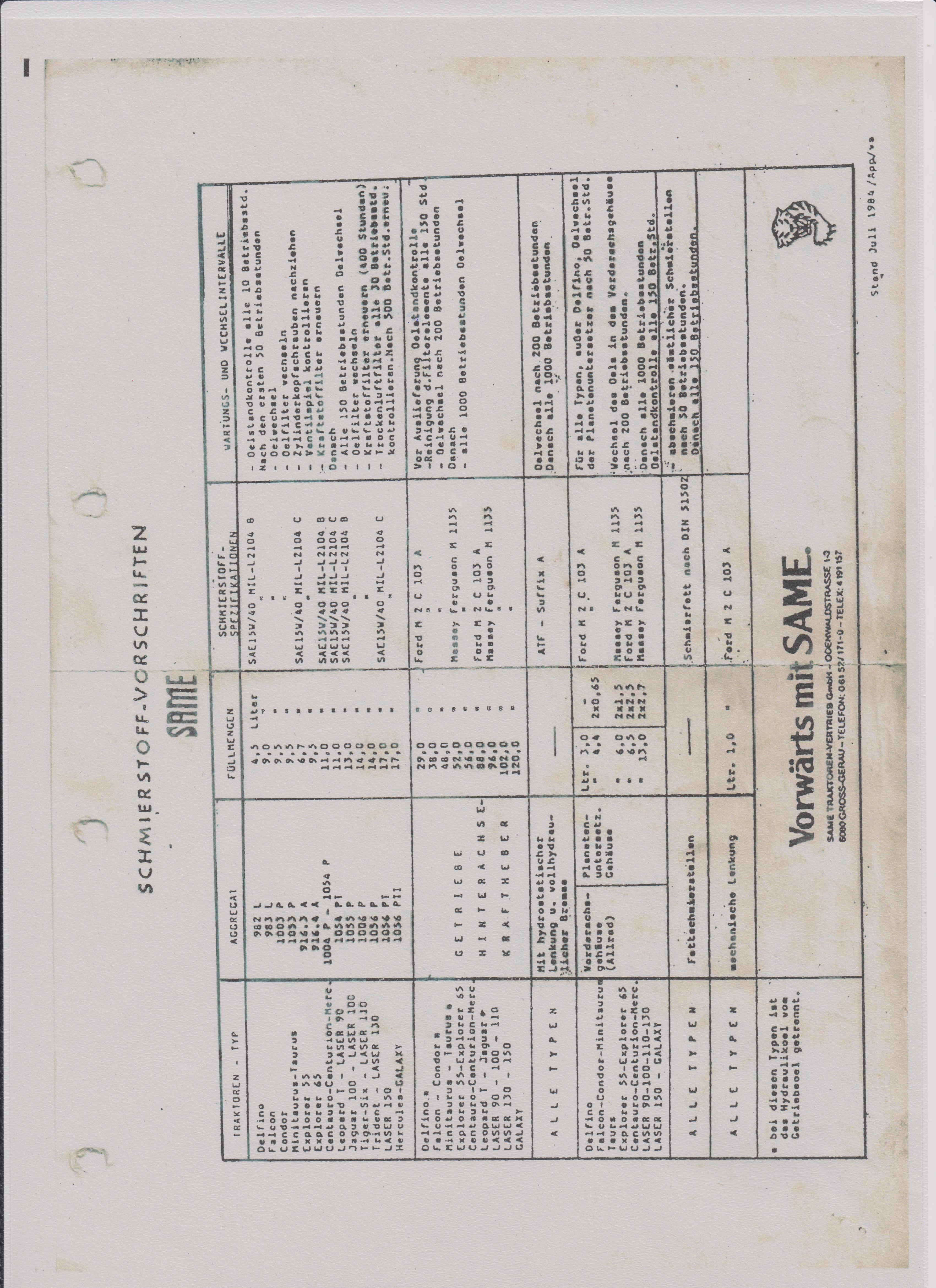 Anbei noch ein Dokument von Same aus 1984: