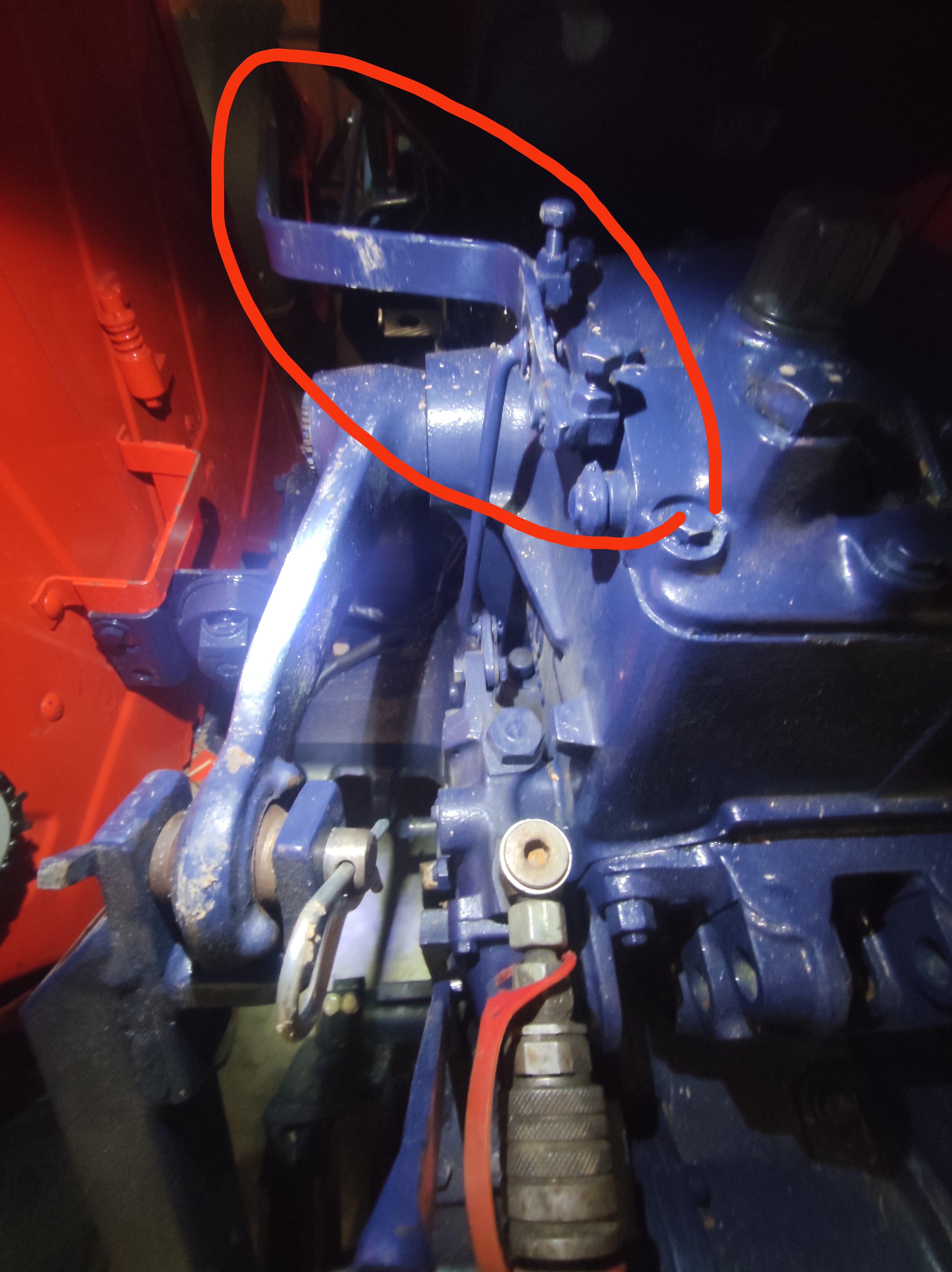 an meinem Falcon 50DT finde ich hinten links am Hydraulik Block oben einen Hebel, wie auf dem Bild zu sehen, den Mann hoch und runter drücken kann und via Verbindungsstange weiter unten ein denke ich Ventil betätigt.