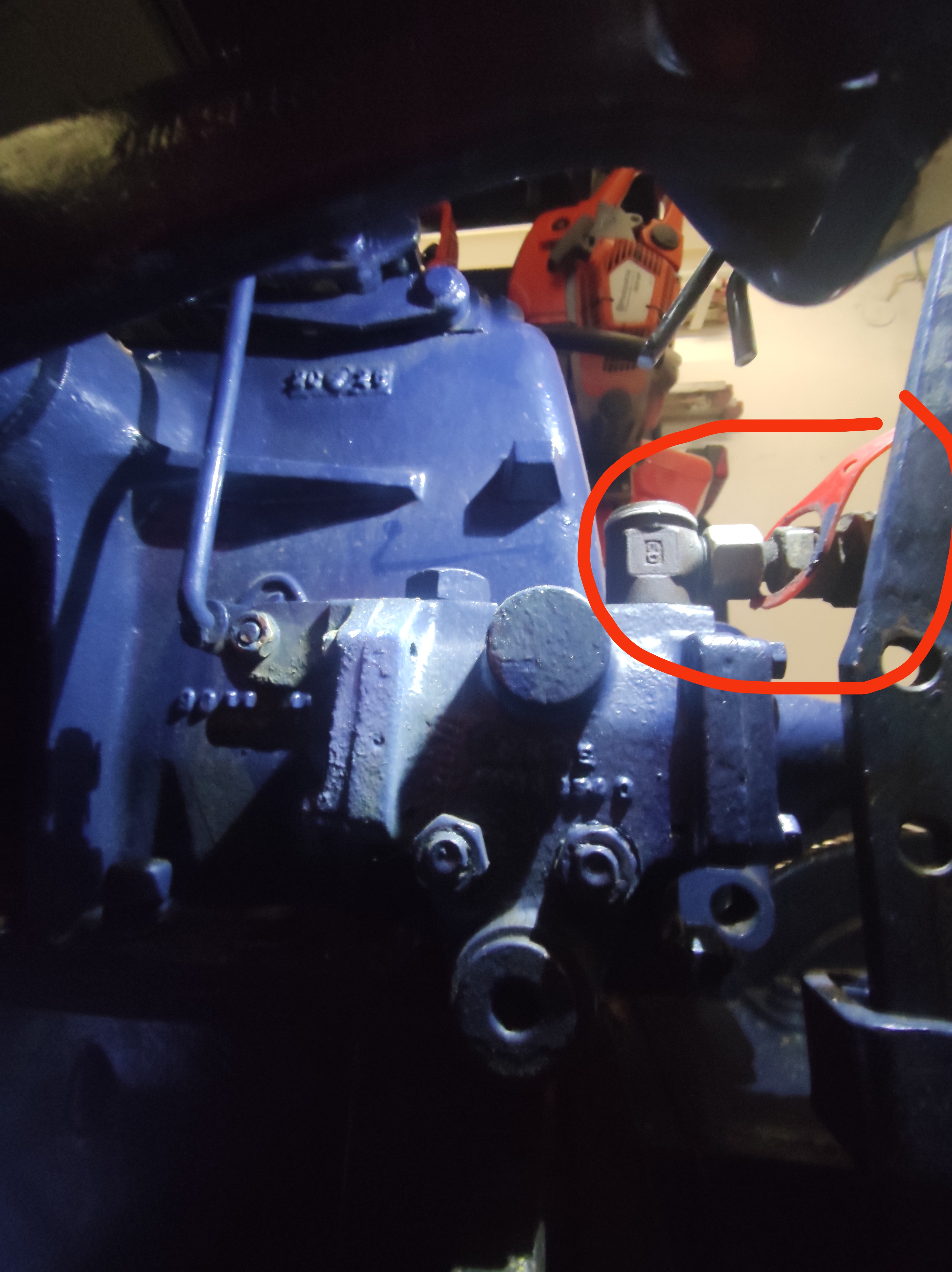 danke für die Info. Dank eurer Hilfe ist der Rücklauf nun gefunden. Bevorzuge den obigen am Kontrollstab. Wäre nun nur noch die Frage woher den (Dauer)druck nehmen. Am Steuerventil habe ich noch nen Anschluss gefunden. Auf dem Bild markiert. Falls sich jemand auskennt : ist hier eventuell Daueröldruck vorhanden?