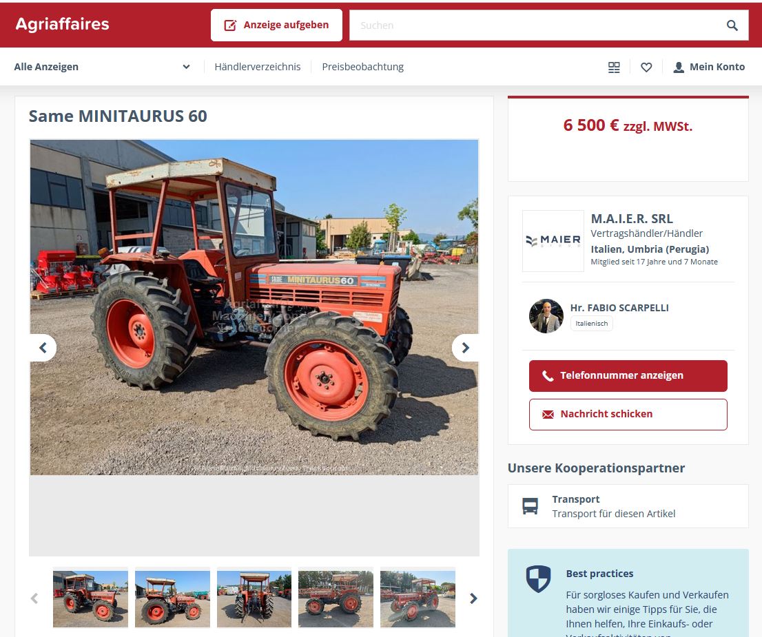 Die Einfachheit besteht nun darin, Ihren Wunsch, einen Same Minitaurus 60 zu finden. Wenn Sie ihn in Deutschland z. Zt. nicht finden, können Sie entweder warten, bis irgendwann mal wieder einer angeboten wird oder in einem größeren Umkreis suchen.