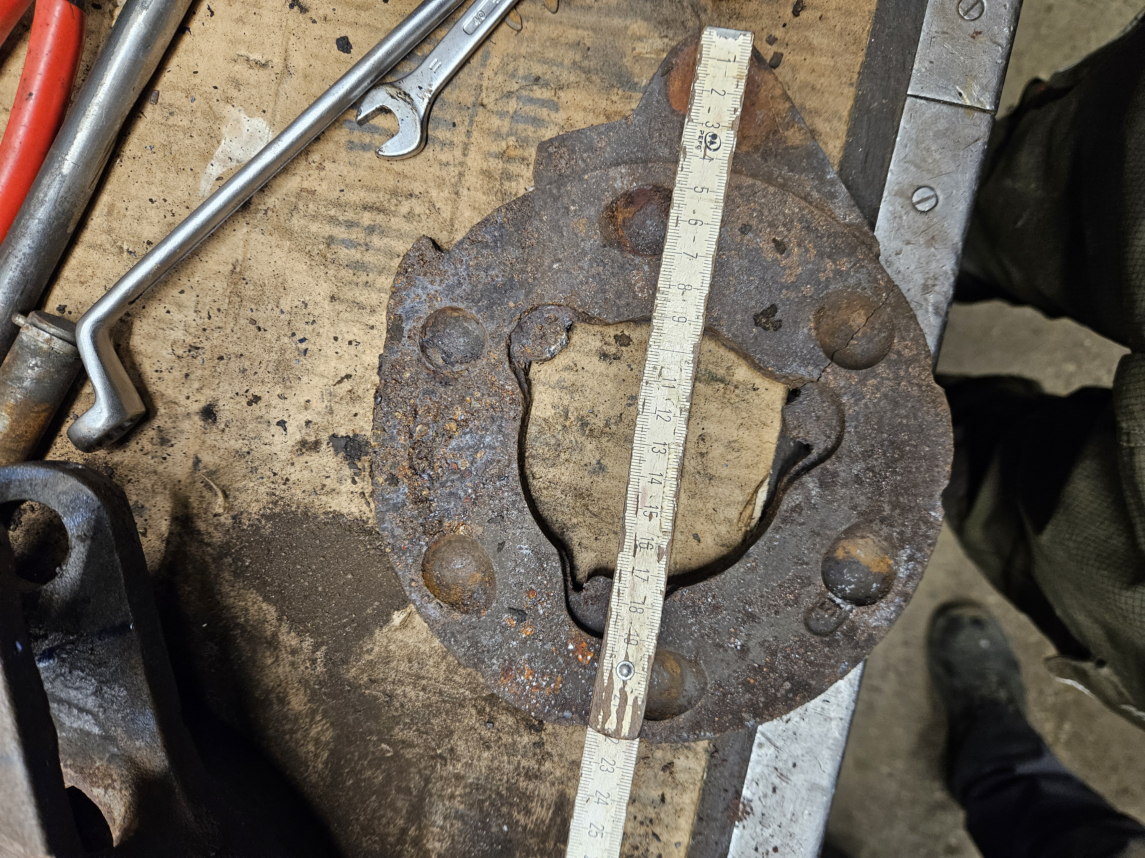 Bei meinem Condor ist die Handbremsscheibe gerissen. Jetzt muss ich zwei neue haben. (die andere Seite ist auch durch....)