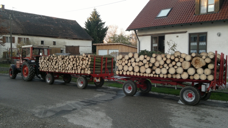 Das war es dann so ziemlich mit dem Holz für diesen Winter.... Morgen mal messen, was nun so zu Hause liegt... Man merkt doch deutlich, die beiden Italos machen das doch wesentlich angenehmer, der Dicke zieht die 2 Hänger ganz entspannt nach Hause und der Hürlimann ist klein und wendig zu Rücken...