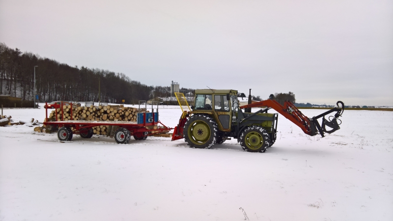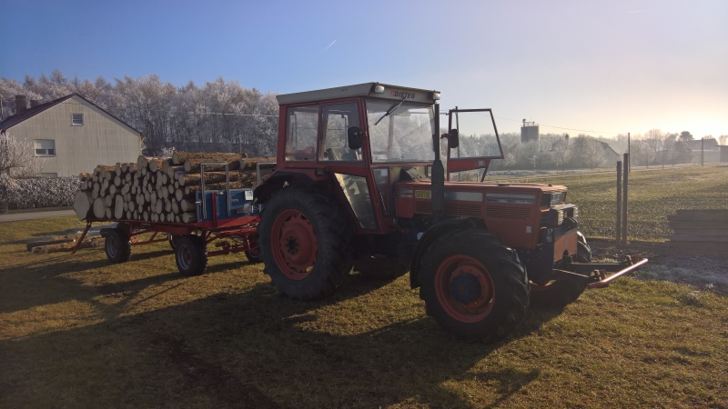 Dann noch nen Wagen mit heim genommen... Der Same wollte bei der Kälte nicht, da die Batterie etwas schwächelte, also nur einen Wagen mit dem Hürlimann mitgenommen. Ich glaube, das war auch gut so. Straßenverhältnisse waren nicht so schön und eine Steigung muss ich auch rauf. Da hieß es im 4. Gang Anlauf was die Kiste mit Handgas hergibt und kurz vor der Steigung Allrad rein um die Schneepiste hochzuwühlen.... Wie hat´s einer meiner Kumpels beschrieben: "Auswärts sind wir assozial". Die Aktion muss ned nochmal sein und ich hab so den Dunst, dass der Same da mit 2 Anhängern auch hart am Limit gewesen wäre....