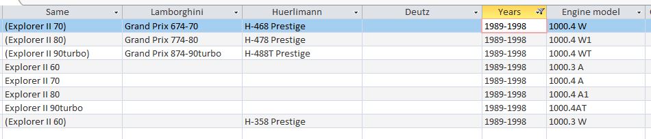 Die Tabelle hilft in sofern schon mal weiter, da jetzt klar ist das es zum Explorer 60 kein Pendant von Lamborghini oder Hürlimann gibt.