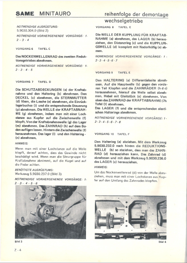 Um eine erste Bestandesaufnahme zu machen reicht es das Hubwerksgehäuse kompl. abzubauen ( ist eine eigenständige Einheit nur rundherum die Schrauben lösen, die hinten in der mitte von unten nicht vergessen, Gestänge abhängen und zu zweit runterheben ) das Getriebeöl abzulassen, eventuell noch den Blechdeckel vor dem Hubwerksgehäuse, dann siehst du das Diff und genau darunter befindet sich die Schaltmuffe. Danach lässt sich die Zapfwelle nach Demontage des Seegers hinten kompl. mit der Lagerung nach hinten rausklopfen. Leider weiss ich nicht mehr ob die Schaltmuffe so ausgebaut werden kann oder ob sie am Diff ansteht, mein letztes Taurusgetriebe war vor ca. 20 Jahren. Falls nicht oder falls es nötig wird die vordere Welle auszubauen muss der Traktor getrennt werden um die Befestigungsmutter der vorderen Welle zu lösen damit diese danach auch nach hinten rausgetrieben werden kann.