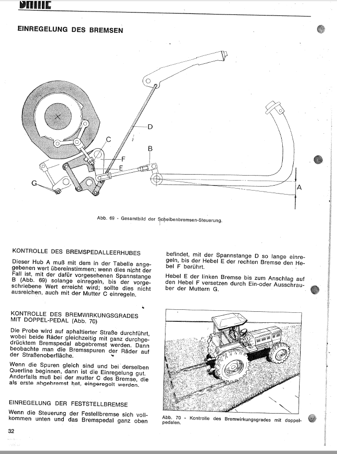 Die Handbremse kann man so einregeln, das sie gleichmäßig bremst rechts und links. Aber die Fussbremse nicht oder hängt das alles zusammen? Siehe angehängtes Bild von trattore.it