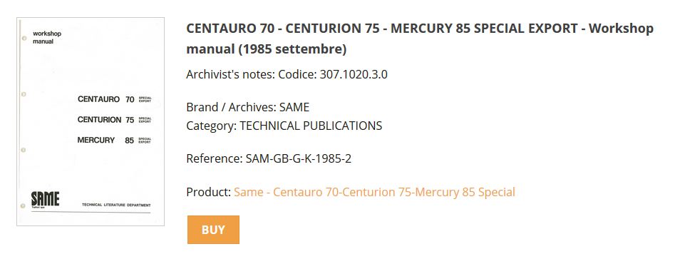 In dem Werkstatthandbuch für die Varianten b) und c) Centurion 75 Export und Special sind auch gleichzeitig die Typen Centauro 70 Export und Special und Mercury 85 Export und Special dokumentiert.