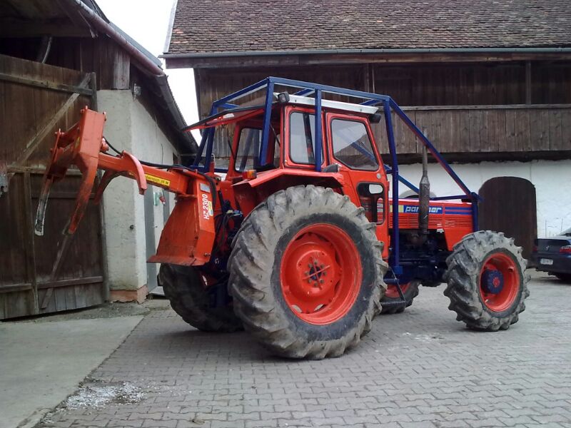 Was mir noch so auffällt, du hast mindestens vorne größere Reifen drauf als meiner. Meine hat vorne 12.4-24er und hinten 16.9-34er drauf. Was hat deiner drauf? Bei meinem steht auf der Haube auch nur Panther, ist aber mit 90PS im Brief eingetragen. Den 88er schreibt man mW. auch "PANTER" und den 90er und 95er "PANTHER". Auf der Bedienungsanleitung steht aber auch PANTER...