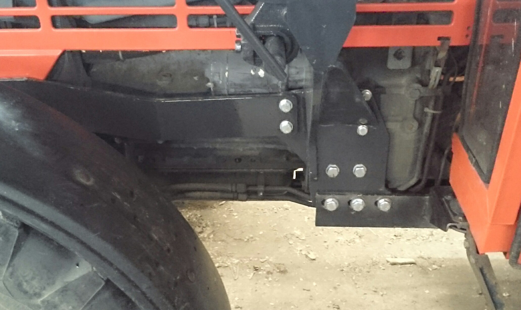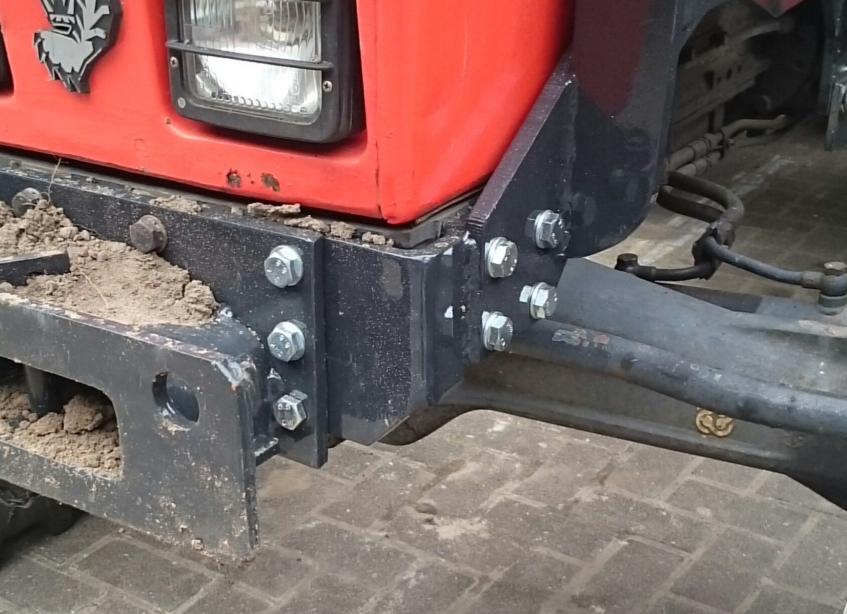 Bei dem Vorbesitzer der Anbaukonsolen ist der Schlepper an der vorderen Konsole auseinandergebrochen, aus diesem Grund habe ich diese über den Frontgewichtsträger miteinander verschraubt.