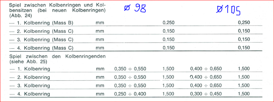 Sind aber an Kolben und/oder Laufbüchsen Riefen oder Spuren sichtbar, würde ich beides erneuern. Die Entscheidung liegt allerdings bei dir.