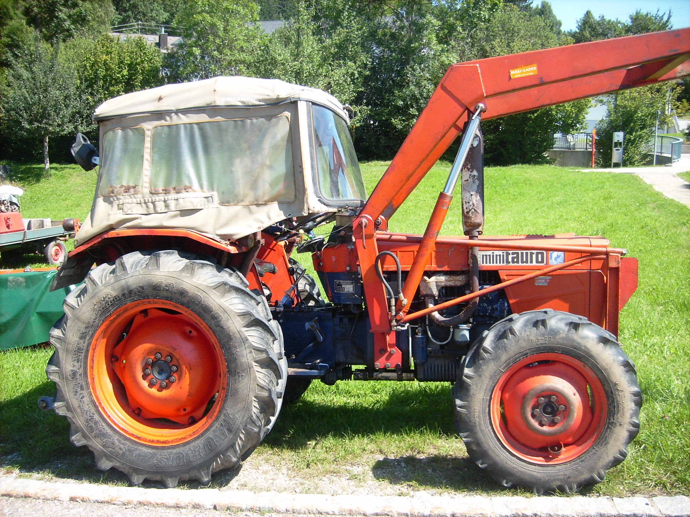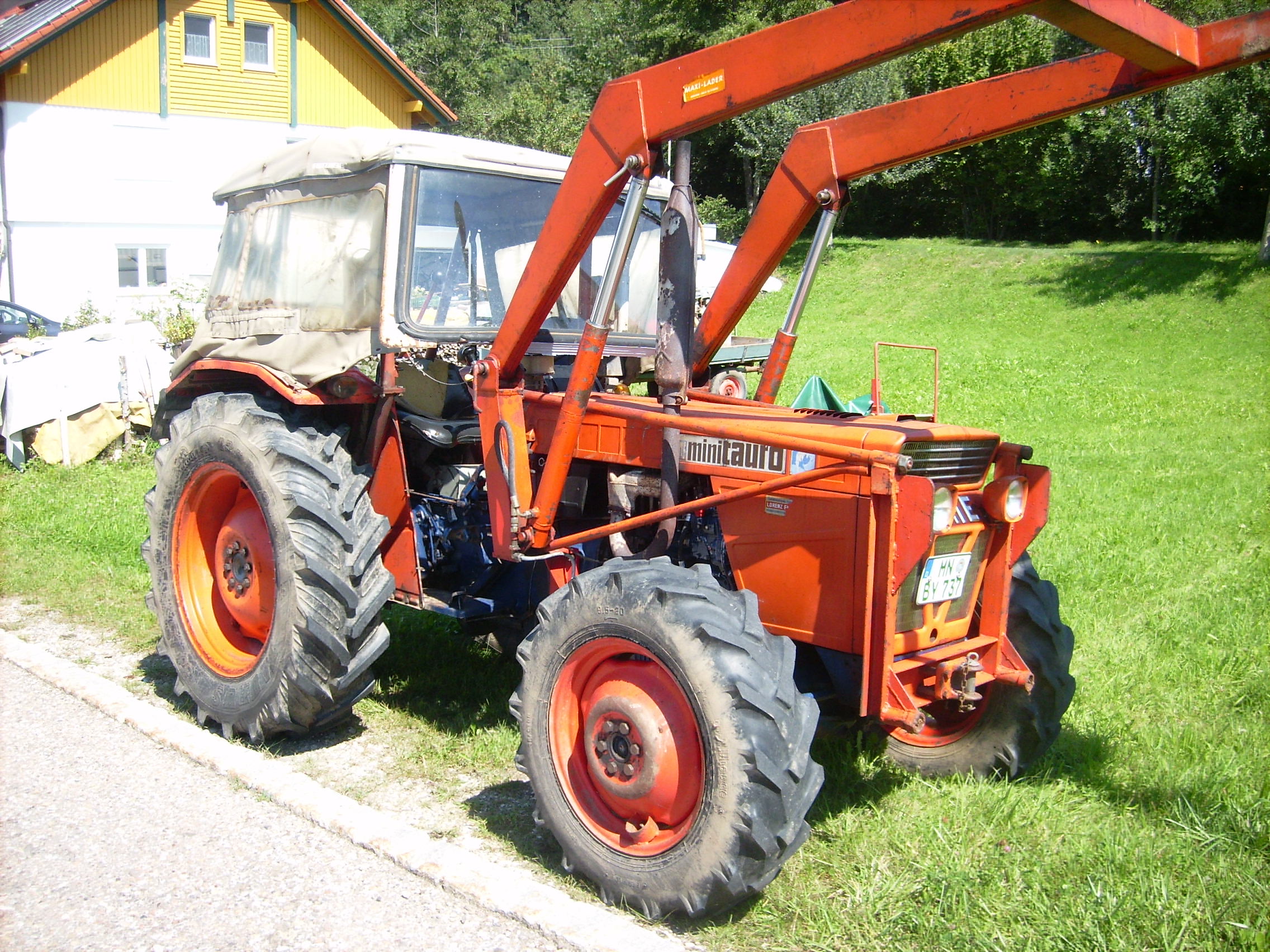 So äußerlich macht der Minitauro 50 doch einen passablen Eindruck. Die Vorderreifen sind wohl nicht so gleichmässig abgefahren. Ich denke das könnte entweder auf viel Frontladerarbeiten oder zu wenig Luftdruck hinweisen.