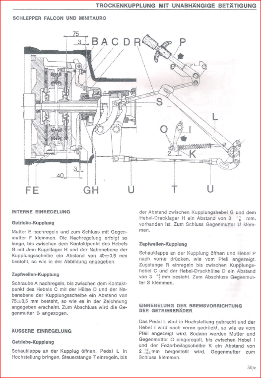 Nein, die Abmessungen des Teiles 31 kenne nicht. Ich habe dir mal die komplette Seite mit den teils vorhandenen Abmessungen hier angehängt. Du könntest ja mal probieren, ob sich nach dem Lösen der Muttern 32 der Hebel 33 noch weiter nach vorne bewegen lässt und damit die Getriebenebenwelle besser gebremst wird. Wenn das der Fall ist, dann die Muttern wieder an entsprechender Stelle kontern. Dabei natürlich auch berücksichtigen, daß das Gleitstück nach Loslassen des Kupplungspedals wieder von der der Nebenwelle losgelöst wird und nicht an dieser schleift. Den Federdruck könntest du z.B. durch Hinzufügen von Unterlagscheiben Nr. 30 erhöhen.