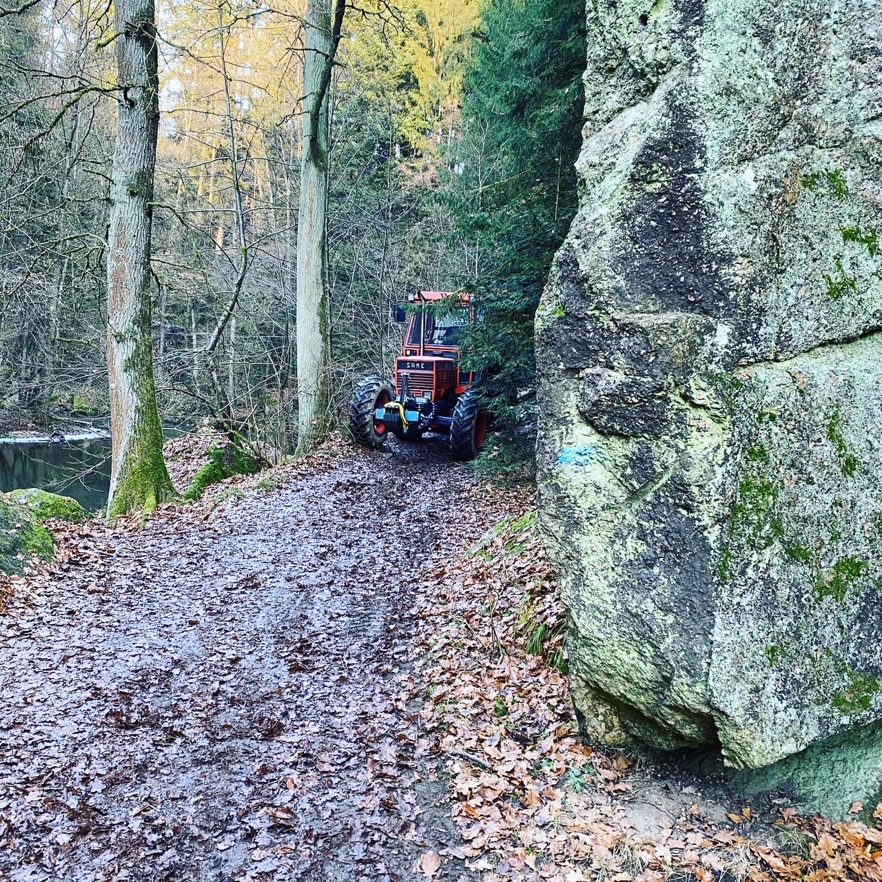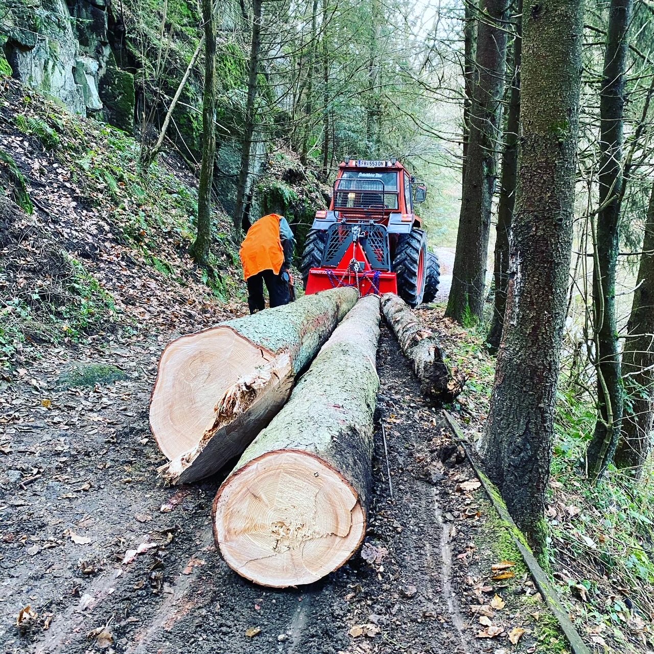 Die Stahlplatte sind erstens mal ca 100kg Ballast und Rammbügel im Wald.