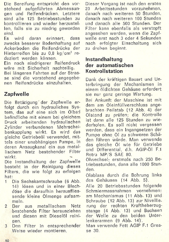 der Ölpumpe für die Betätigung der Zapfwellenkupplung arbeitet.