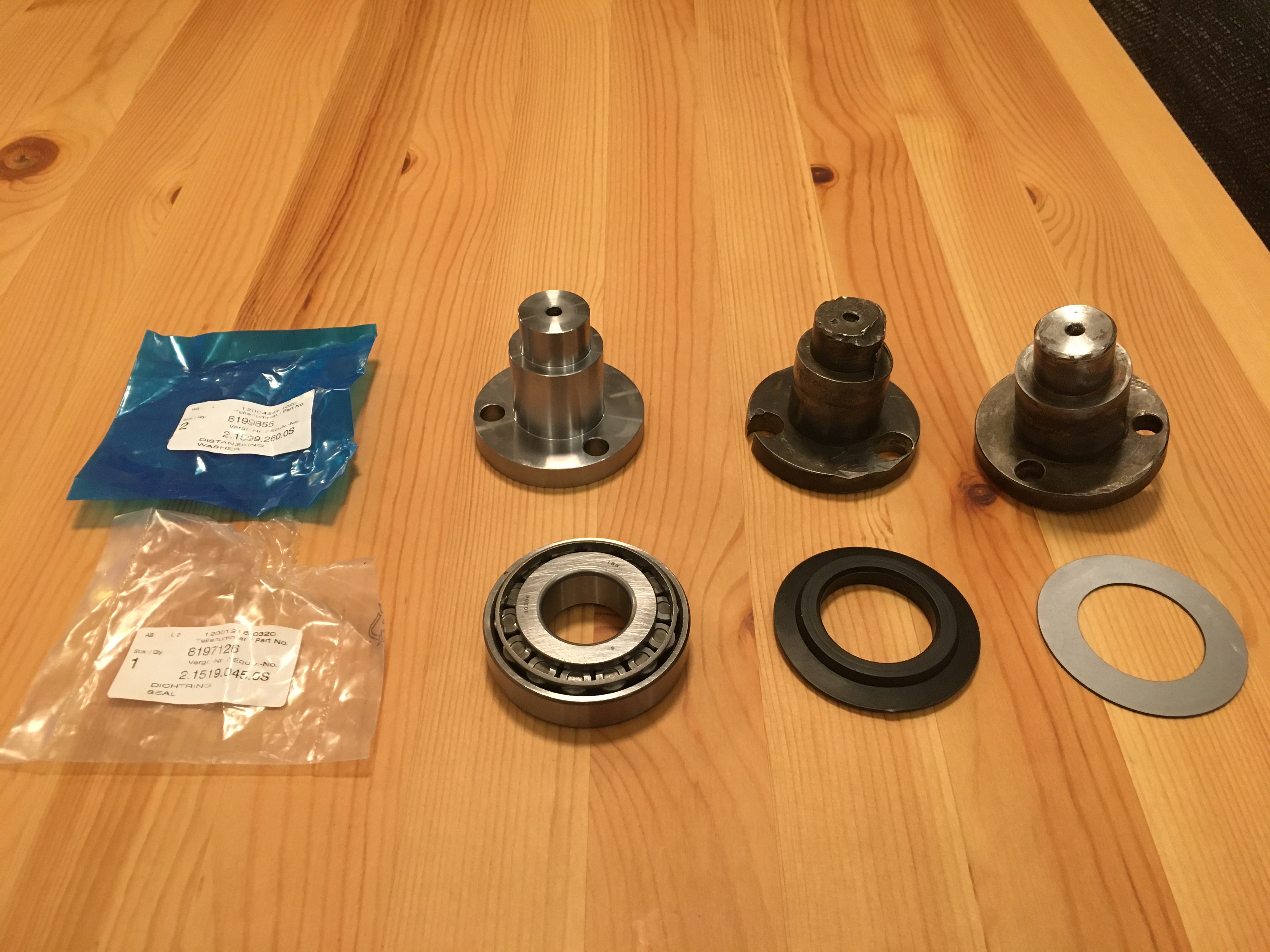 Leider passt das laut Nr 42 bestellte Lager nicht rein. Das Lager ist zu groß, und auch der Dichtring und der Distanzring passen oben nicht. Unten passen der Dichtring und der Distanzring. Habe jetzt mal ausgemesen: Lagersitz ist 58mm, Durchmesser Bolzen ist 28mm und Tiefe der letzten Abstufung des Bolzenz ist um die 17mm. Demnach sollte das Lager was Kurt geschrieben hat das richtige sein. Hast du noch ein Foto vom Ersatzteilkatalog des Saturno 80? Dann würde ich mir die Nummern für den Dichtring und den passenden Distanzring raussuchen?