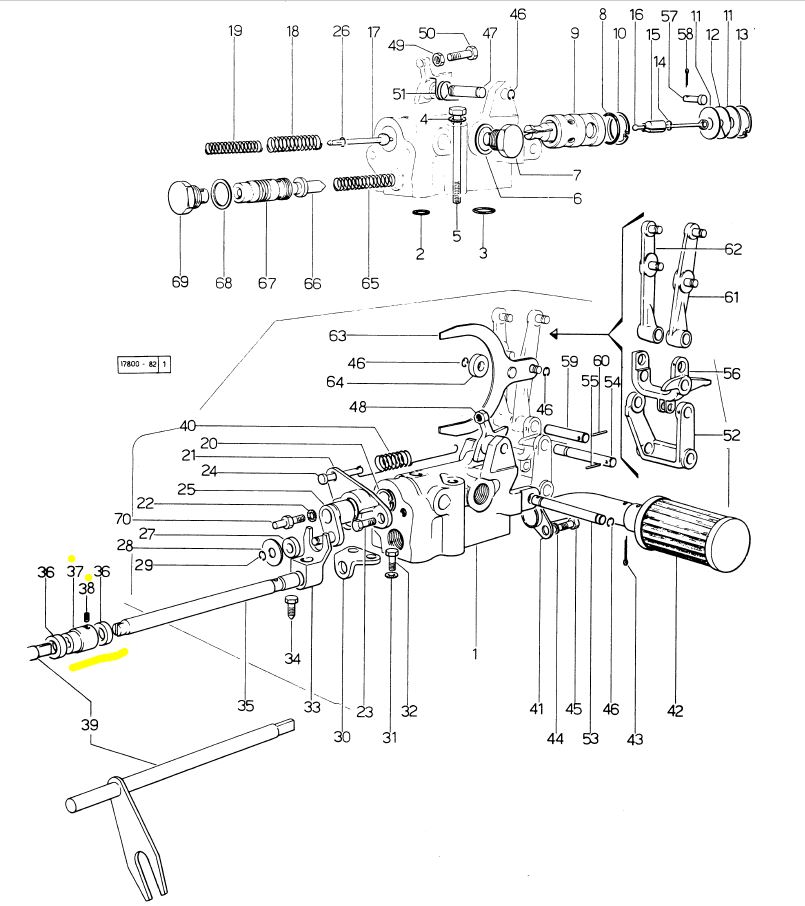 Das kleine Teil Nr. 37 befindet sich in dem Zwischenraum zwischen SAC Gehäuse und dem Getriebedeckel und ist im Normalfall total verdreckt und nicht sichtbar. Und ja genau das sagte mir ein geschulter Same Mechaniker, Paß auf bau das erst aus und hebe dann das Gehäuse ab, sonst verbiegst du innen die Steuerung. Und was soll ich sagen. Mich hat diese Info gerettet, denn ich habe erst mal lange gesucht, bis ich das Teil tatsächlich unter dem Dreck gefunden hatte.