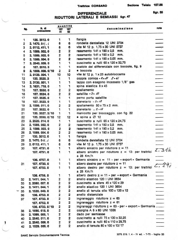ergänzend zu Andreas Ausführungen, hier ein Ausschnitt aus der ETL des Corsaro 70 Die Übersetzung gibt nicht so viel über die genaue Ausführung des Lagers her, lediglich das es sich um ein Rollenlager handelt, allerdings mit den entsprechenden Abmessungen. Ein Kugellager wäre cuscinetto a sfere, ein Kegelrollenlager cuscinetto a rulli conici.
