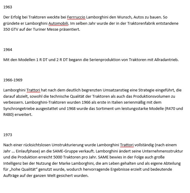 Quelle: Buch von Matteo Vitozzi "Trattori Lamborghini" Nella storia, tra eleganza e perfezione ISBN 978-88-7220-354-5