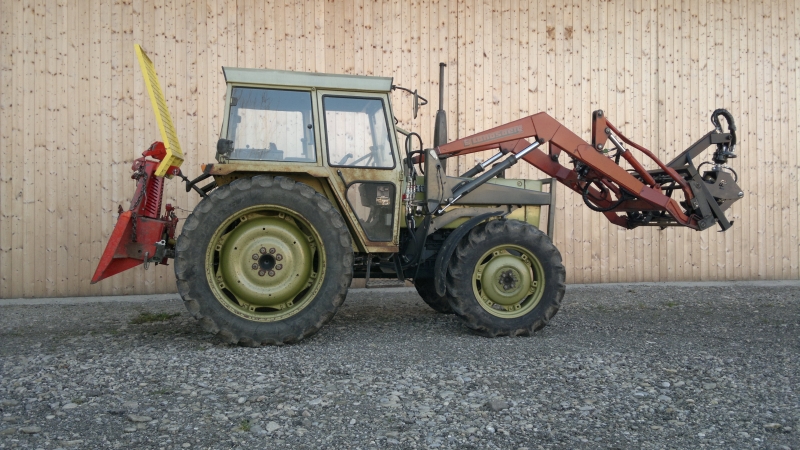 Ich wollt mir eigentlich nen Oberlenkerbock machen, der in die Löcher vom Zugmaul greift, aber das wäre ein so blödes, buckliges Kostrukt geworden, das hätte recht gepfuscht ausgesehen.... Es ist halt das alte Lied, "Für die 3 Mal im Jahr geht das schon"... Zur Zeit hab ich die Winde dran, die zieht auch ganz nett am Oberlenker, aber die Schweizer haben ne ziemlich große Feder eingebaut, da bewegt sich wirklich erstaunlich wenig.... Ich hab auch noch ein kleines Gewicht für den Hürlimann, das hat so um die 400....500 Kg, das ist besser als nichts, aber wenn der Lader mal gefordert ist, ist das eig. zu wenig, da der Hürlimann hinten hoffnungslos leicht ist. Hab ich den Lader dran, ohne was im Heck und trete im Kies auf die Bremse, auch nur leicht, blockiert der sofort.... Zum Mist laden hatte ich heuer nen 800er Klotz von meinem Opa dran, der war auch noch leicht genug. Der Hürlimann ist vorne schwer wie Senkblei, hat die Vorderachse rel. weit innen und einen eig. zu großen Frontlader dran. Der Lader ist nicht besonders lang, hat aber Kraft wie ein Bär, den Hürlimann mit dem kleinen Gewicht dran hebt der hinten aus, ohne dass die Hydraulik Anstalten macht.... Dafür bekommt man den vorne nicht vom Boden, zum Holzrücken ist das schön, wenn man mit 2 Bäumen an der Winde eng um ne Kurve will, mit dem kleinen Deutz auf dem Bild ging´s dann immer grade aus... :mrgreen: