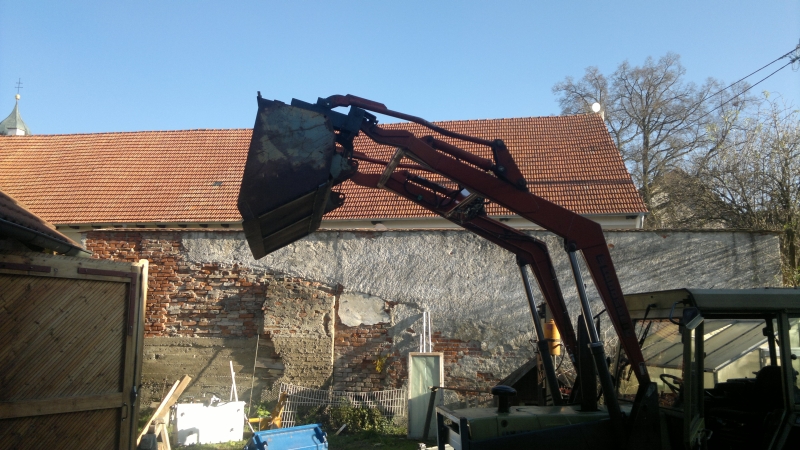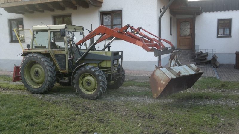 die L-Steine waren das Stichwort. Ich habe mal einem Kumpel ca. 2m hohe L-Steine von der LKW Absetzstelle bis zum Einbauort transportiert und hab tatsächlich ein paar Bilder davon. Aber mehr wie zwei Stück gleichzeitig zu transportieren ging auch nicht und der Hammerschlegelmulcher war ein gutes Heckgewicht.