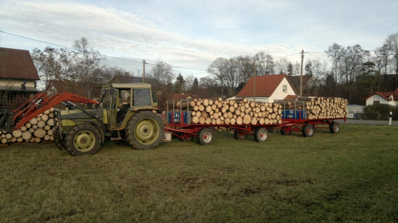 Das war es dann so ziemlich mit dem Holz für diesen Winter.... Morgen mal messen, was nun so zu Hause liegt... Man merkt doch deutlich, die beiden Italos machen das doch wesentlich angenehmer, der Dicke zieht die 2 Hänger ganz entspannt nach Hause und der Hürlimann ist klein und wendig zu Rücken...