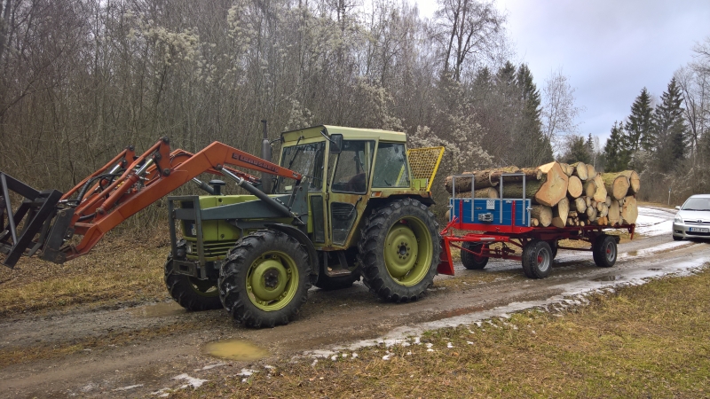 Da liegt das Problem, in der Früh mit 2 leeren Anhängern in den Wald wird da nix warm... Heimwärts merkt man auch nicht viel, mit den 2 Wägelchen muss man nur sehr selten überhaupt mal runterschalten, mehr als gut handwarm wird der meist nicht. 66l Öl schlucken so einiges...