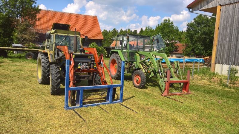 Der Same als Lastesel.... Packer ist ein Eigenbau für meinen Onkel an dessen 612er Fendt... Dass die 135PS mal was zu tun haben.... Für mein Hupferl ist der ganz schön schwer und vor allem breit... Warntafeln usw. kommen natürlich noch dran....
