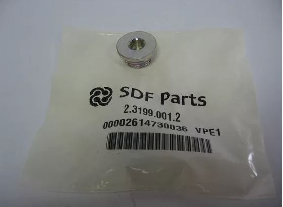 Verschlußschraube mit der SDF TEilenummer 2.3199.001.2 als "Stopfen 1/2 GAS" und den dazugehörigen Kupferdichtring 21 x 26 mm mit der SDF TEilenummer 2.1560.054.0
