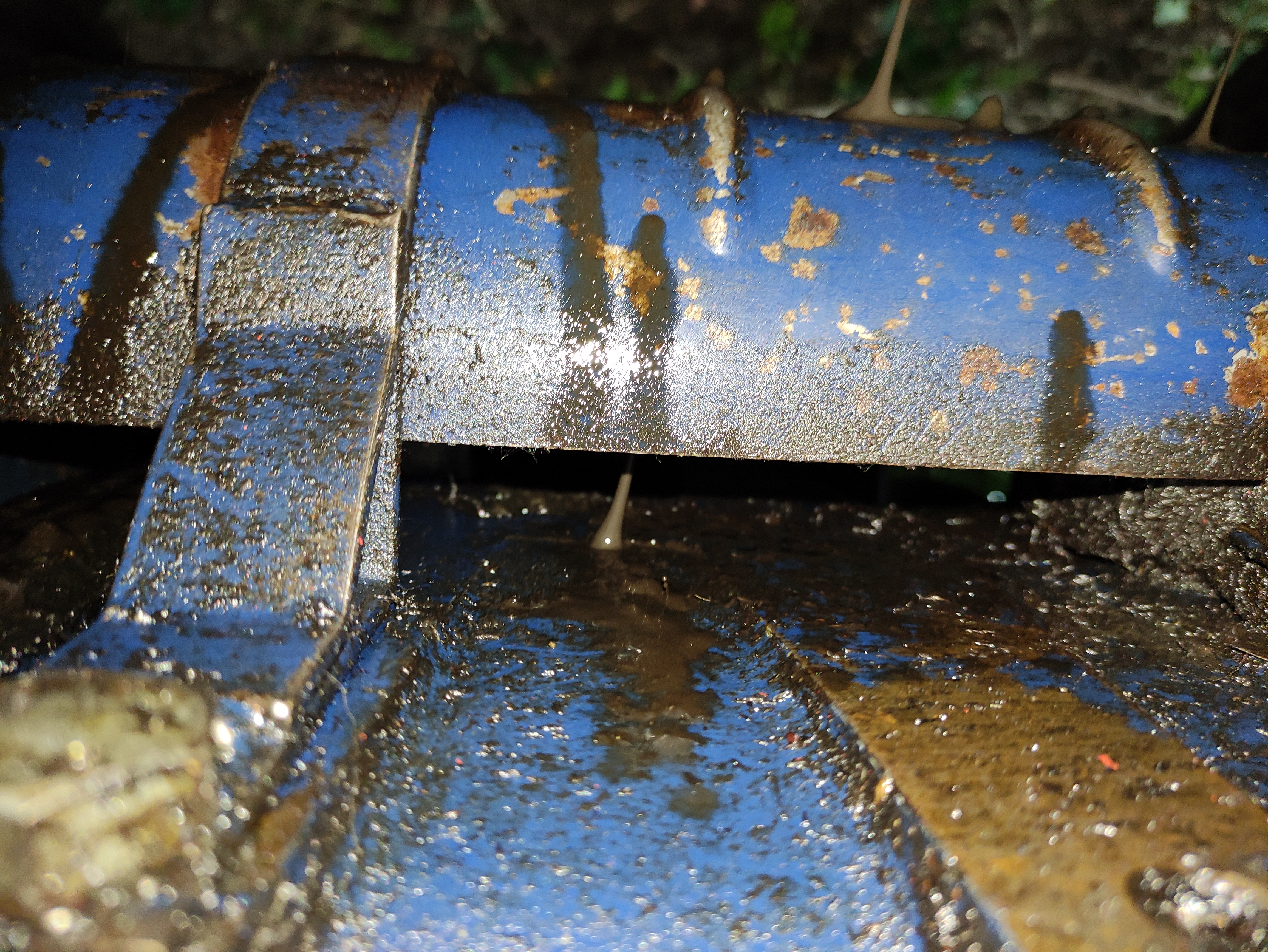 Das weisse Zeug, was da rausläuft ist ein Öl/Wasser/Fett-Gemisch - das da auch rauslaufen soll ( aber im Normalfall nicht permanent)!