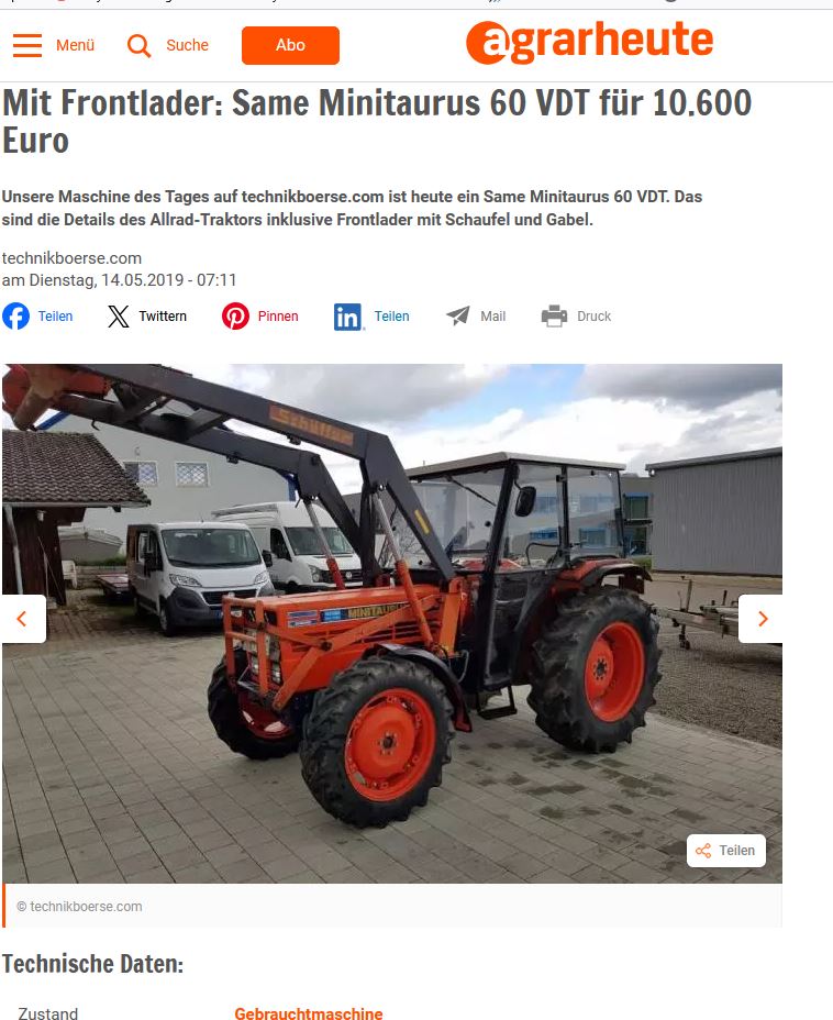 - Same Minitauro DT 60 (ohne Zubehör). War anscheinend bisher nur für leichte Arbeiten eingesetzt. für ca. 12K€