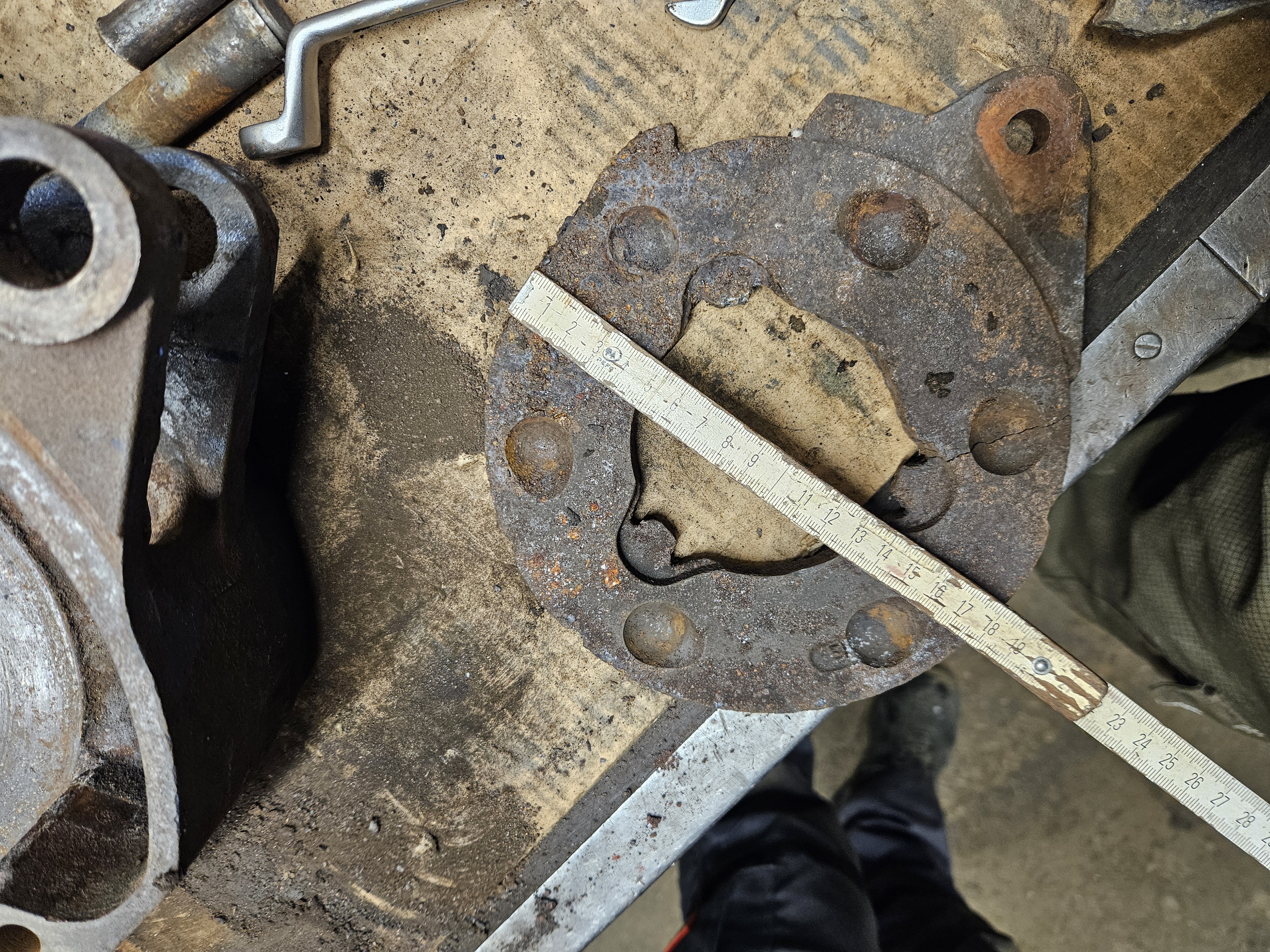 Bei meinem Condor ist die Handbremsscheibe gerissen. Jetzt muss ich zwei neue haben. (die andere Seite ist auch durch....)