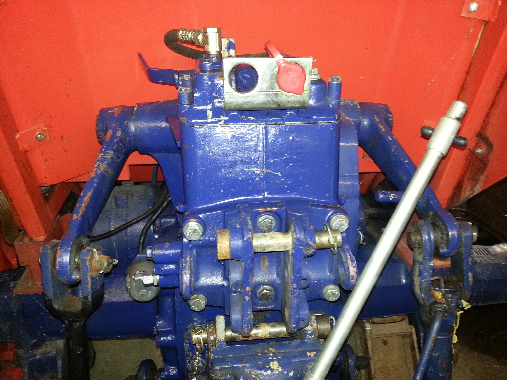 So wie im Bild zu sehen ( oder nicht ) wurde der Druckanschluss am Anschluss in der Mitte abgezweigt. Das ist der Schlauch ohne T-Stück oder sonstiges! Der andre Schlauch mit T Stück ist bei mir der Rücklauf. Steht der Hebel oben so wie im Bild, dann kann ich mit dem Frontlader arbeiten, wird er gesperrt dann kann ich den Kraftheber senken und heben. Leider greift die Höhenregulierung für den Kraftheber bei dem Anschluss aber auch für den Frontlader! - Elegant ist das auf keinen Fall!
