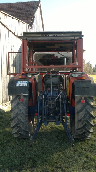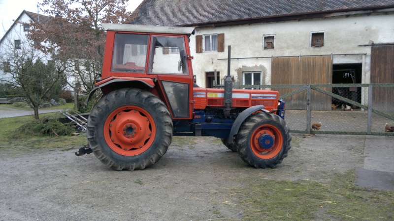 Öhh ja, mei was soll ich jetzt dazu großartiges schreiben... Ok, versuchen wir das mal zu erläutern. Im Grunde ist das die selbe Sache wie die Heckdreipunkt, nur dass sich die Unterlenkerarme nicht in der Breite verstellen lassen. Bei den neuen Modellen lassen sich die Unterlenker einfach hoch klappen, bei meiner am Same muss man die noch rausziehen und dann irgendwo sicher einlagern. Oberlenker ist das selbe wie hinten. In der Front sieht man ja oft so ein meist rotes Dreieck. Das ist ein sog. Weistedreieck, sozusagen ein Schnellwechsler für die Front. War mal lange Zeit sehr in Mode, aber gerade im Bereich Großschlepper und Bodenbearbeitung (3m Frontpacker) sieht man die kaum noch, ich vermute ganz einfach das es nicht stabil genug ist, um diese großen Schubkräfte aufzunehmen. Weitere Schwachstelle, das Dreieck ist auf Kategorie II ausgelegt, bei KAT III sind die Anbaupunkte der Unterlenker ja weiter auseinander, da sind dann meist gekröpfte Aufnahmen dran, aber wenn da mal 200PS oder mehr dran schieben sieht das Ding ziemlich schnell alt aus... Im Bereich Grünland aber immer noch sehr verbreitet, grade wenn man mal ein Mähwerk anbaut, dass etwas schräg steht, lernt man das Ding schätzen, einfach hinfahren in das Dreieck vom Anbaugerät einfädeln und hoch heben, das zieht´s schon hin. Dann schnappt ein Haken ein und das Ding hängt. Im Haken ist noch ein Loch drin, da muss ein Splint rein, dass sich da nix selbstständig machen kann. Die meisten Frontkraftheber sind mit KAT II ausgerüstet, so auch mein Same. Ne gute Fronthydraulik ist meistens, wenn´s ne Originale ist, in den Schlepper integriert, sprich an den tragenden Teilen angeschraubt, oder wie bei mir mit zwei Flachstählen in handfester Dimension an die Kupplungsglocke mit angeschraubt. Von den Ösis, sei es Hauer oder Hydrac gibt es dann noch die Version für Grobmotoriker oder zum Schneeräumen, die stützen bis zur Hinterachse ab, zum Futterholen aber etwas oversized, wenn ihr mich fragt. Problem an den Fronthydrauliken ist halt, dass die Geräte, die der Schmied mal anno dazumal zusammengedengelt hat meist nicht zur Kategorie passen und auch untereinander tlw. deutliche Abweichungen drin sind. Ich hab heuer ne Ballengabel für´n FL gebaut, mit Euro-Aufnahme. Maß am alten JD genommen, Gabel feddisch, passt nicht am Fendt Geräteträger, unterschied 2cm... Nochmal Flex raus :twisted: Zu 99% passt es aber. Was meistens nicht passt, sind die Geräte, die so nen Unterlenkerstufenbolzen haben und nur eine Lasche, die sind meist irgendwo zwischen KAT I und KAT II. Beispiel wäre hier unser Güde Holzspalter. Betätigt wird die FH an meinem Same ganz einfach über das Steuergerät für nen Kipper oder Ähnliches. Auf dem 3. Bild sieht man den Schlauch hinten eingesteckt, der geht unterm Bodenblech am Motorblock entlang zur Fronthydraulik. Bei den neuen Schleppern gibt es nun teilweise schon EHR für vorne (Regelhydraulik), aber beim Panther von ´77 kann man das lange suchen :lol:.