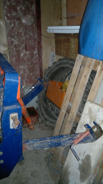 Hier sieht man mal die Unterlenker, die Verriegelungsbolzen sind federbelastet, dafür sind die Flachstähle dran, kann man in offener Stellung einhängen. Der Bolzen am Rahmen der Fronthydraulik hat auch einen best. Zweck. Hier kann man sog. Entlastungsfedern einhängen. Dazu wird das Mähwerk ausgehoben und die Federn mittels ner Kette da eingehängt. Lässt man es nun runter, spannen sich die Federn und nehmen Gewicht vom Mähwerk und verbessern somit dessen Bodenanpassung.