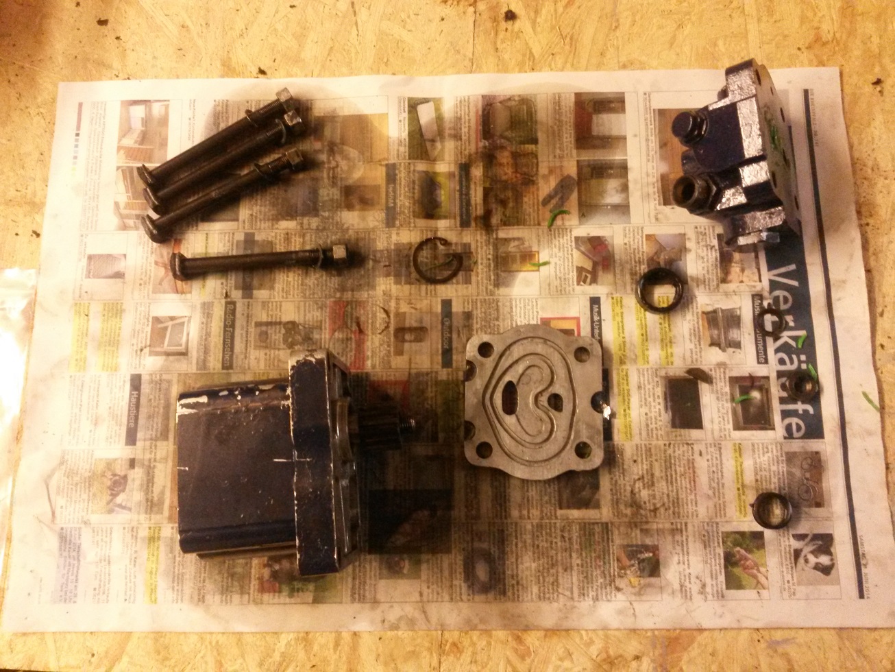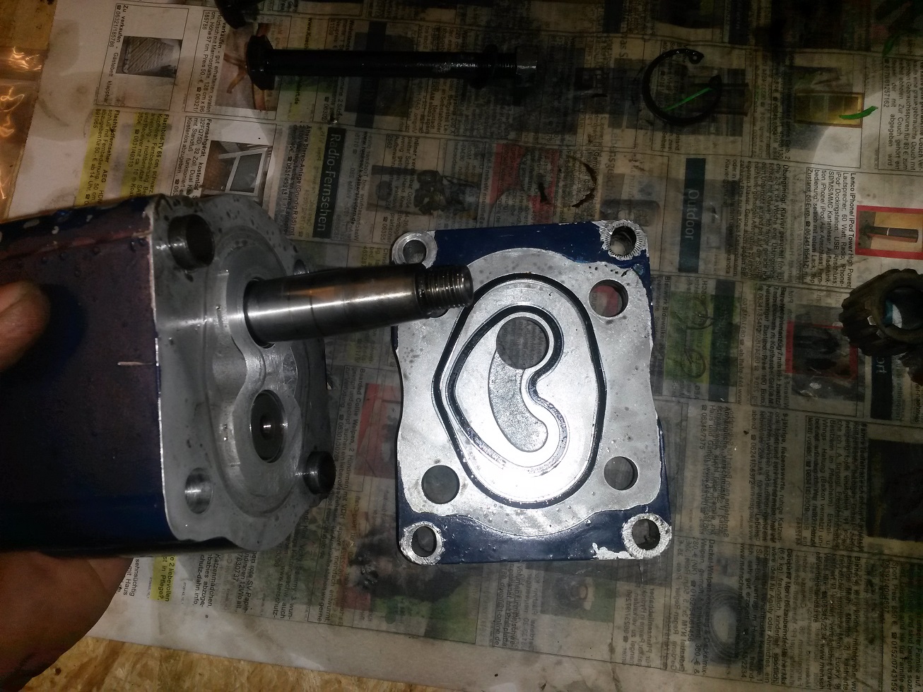 Bei genauerem hinsehen ist mir aufgefallen, dass es aus der Flanschverbindung kommen könnte. Also Pumpe auf, Dichtungen mit Dichtmittel einstreichen und wieder zusammengebaut. Am nächsten morgen war natürlich wieder Öl an der Pumpe obwohl der Schlepper gar nicht in Betrieb war.